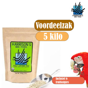 Harrison’s Adult Lifetime Fine – 454 gram – Vogelvoer – 3 Zakken – Inclusief 6 stuks PetsHome Fruitkuipjes