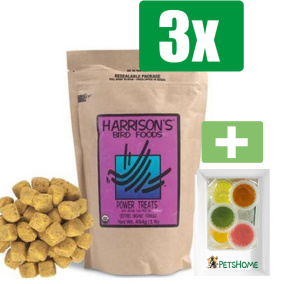 Harrison’s Power Treats – 454 gram – Vogelvoer – 3 Zakken – Inclusief 6 stuks PetsHome Fruitkuipjes