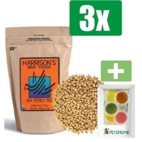 Harrison’s High Potency SUPER Fine – 454 gram – Vogelvoer – 3 Zakken – Inclusief 6 stuks PetsHome Fruitkuipjes