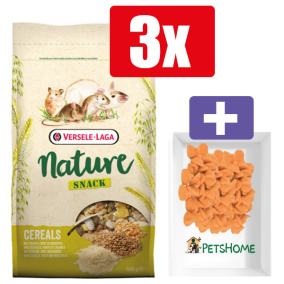 Versele Laga Nature Snack Cereals 500g – 3 Stuks – Inclusief PetsHome Drops Wortel Snoepjes
