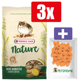 Versele Laga Nature Mini Hamster 400g – 3 Stuks – Inclusief PetsHome Drops Wortel Snoepjes