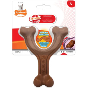 Nylabone Gourmet Wishbone Bacon – Small – Kauwbot – Hondenspeelgoed – Kauwspeelgoed – 3 stuks – Inclusief Goudkleurige PetsHome Adreskoker
