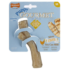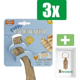 Nylabone Puppy Gourmet Stick Kip – Medium – Kauwbot – Hondenspeelgoed – Kauwspeelgoed – 3 stuks – Inclusief Goudkleurige PetsHome Adreskoker