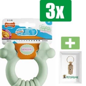 Nylabone Puppy Tactile Ring Kipsmaak – Small – Kauwbot – Hondenspeelgoed – Kauwspeelgoed – 3 stuks – Inclusief Goudkleurige PetsHome Adreskoker