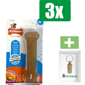 Nylabone Been Extreme Kipsmaak – Medium – Kauwbot – Hondenspeelgoed – Kauwspeelgoed – 3 stuks – Inclusief Goudkleurige PetsHome Adreskoker