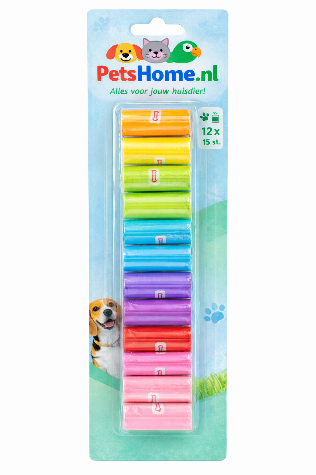 / PetsHome Poepzakjes – Regenboogkleuren – 12 stuks