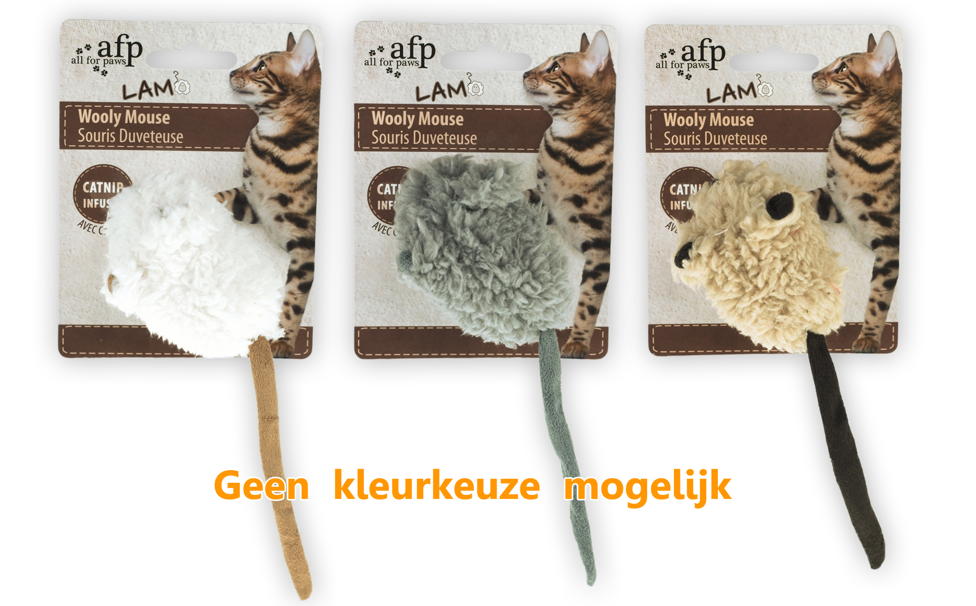Afp Wooly Mouse Lamswol Met Piep En Catnip Assorti 7X7X3 Cm