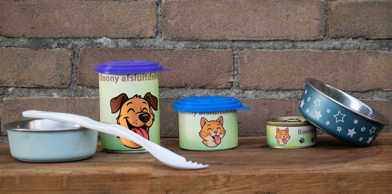 Handige afsluitdeksels & voerschep. Houd je blikvoer vers en makkelijk te serveren!