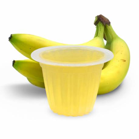 Een zakje bevat 6 kuipjes in 6 in de smaak Banaan.