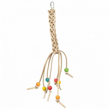 Afmetingen: 21 x 10 cm Materialen: Leer en hout Geschikt voor middelgrote kromsnavels zoals: Caiques, Bonte Boertjes, Pyrrhura’s, Valkparkieten, Lori’s en Amazone Papegaaien