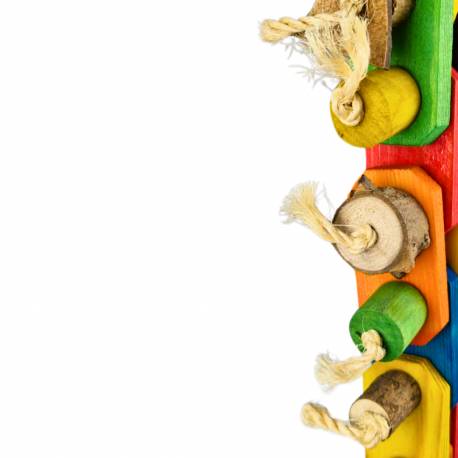 De Pepper Wood Slice Tower is gemakkelijk op te hangen en biedt een veilige, natuurlijke speelomgeving. Met zijn unieke mix van texturen en vormen blijft jouw vogel niet alleen bezig, maar versterk je ook zijn natuurlijke sloop instincten. Ideaal voor een vrolijke en gezonde vogel!
