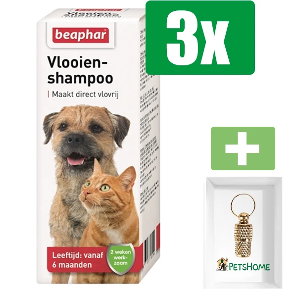 Beaphar Diagnos Vlooienshampoo Hond en kat 100 ML – 3 Stuks – Inclusief PetsHome Goudkleurige Adreskoker