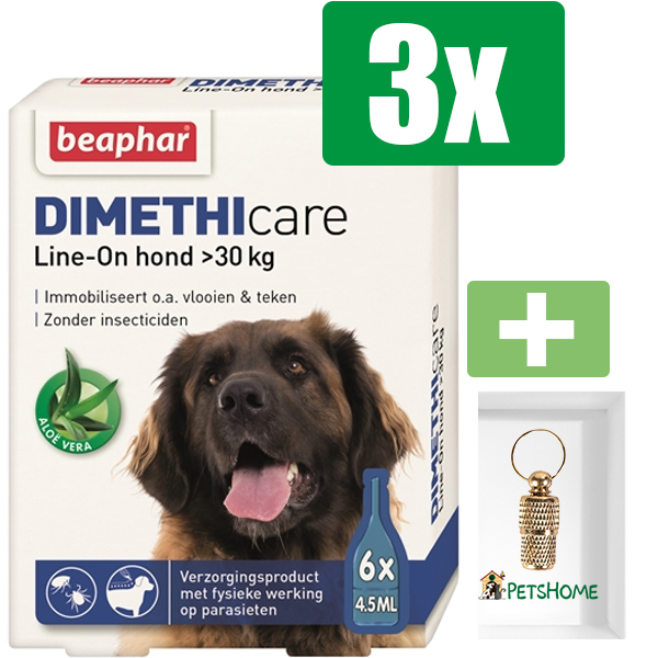 Beaphar DImetHIcare Line-On Anti Vlooien en Teken Druppels Hond > 30 kg 6 pipetten – 3 Stuks – Inclusief PetsHome Goudkleurige Adreskoker