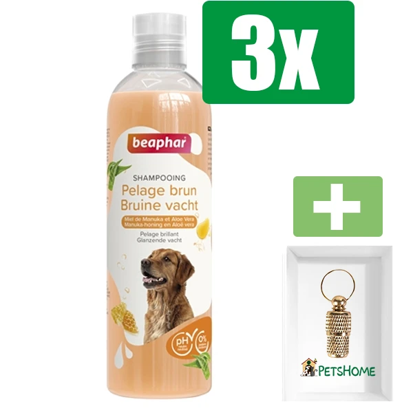 Beaphar Hondenshampoo Bruine Vacht 250 ml – 3 Stuks – Inclusief PetsHome Goudkleurige Adreskoker