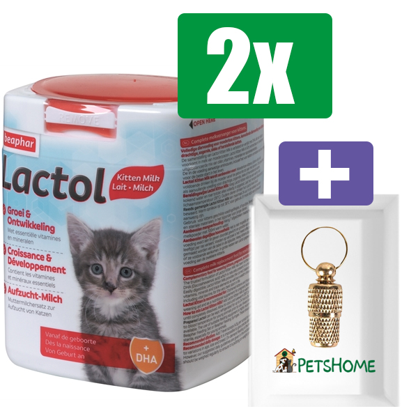 Beaphar Kitty Milk Lactol 500 GR – 2 Stuks – Inclusief PetsHome Goudkleurige Adreskoker