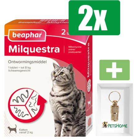 Beaphar Milquestra Ontworming – Kat 2 Tot 12 kg – 2 Tabletten – 2 stuks – Inclusief PetsHome Goudkleurige Adreskoker