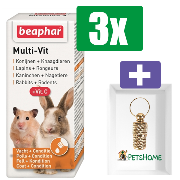 Beaphar Multi-Vitamine Knaagdier En Konijnen 20 ML – 3 Stuks – Inclusief PetsHome Goudkleurige Adreskoker