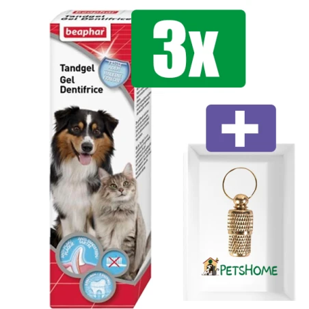 Beaphar Tandgel 100 GR – 3 Stuks – Inclusief PetsHome Goudkleurige Adreskoker