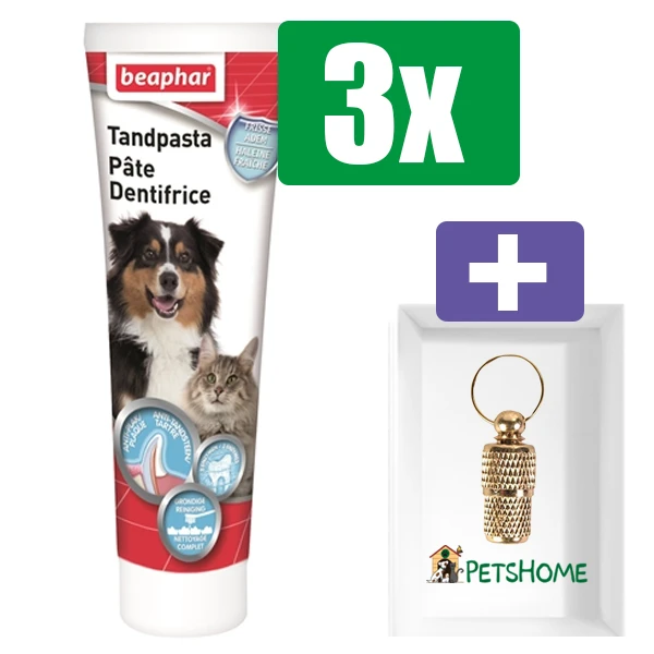 Beaphar Tandpasta 100 GR – 3 Stuks – Inclusief PetsHome Goudkleurige Adreskoker