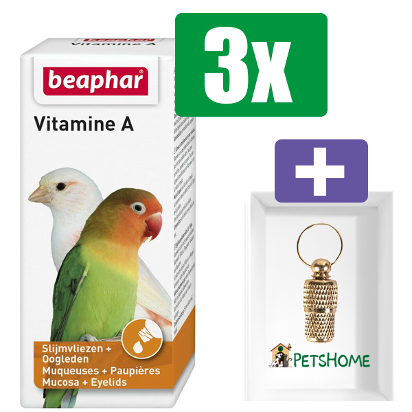 Beaphar Vitamine A 20 ML – 3 Stuks – Inclusief PetsHome Goudkleurige Adreskoker