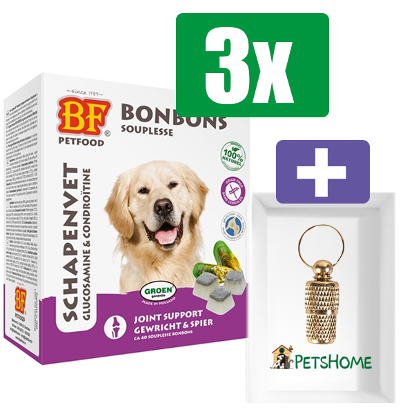 Biofood Petfood Schapenvet Maxi Bonbons Souplesse – 3 Stuks – Inclusief PetsHome Goudkleurige Adreskoker