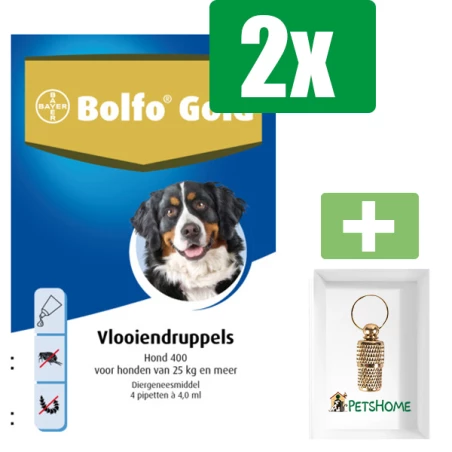 Bolfo Gold hond 400 4 pipetten – 2 Stuks – Inclusief PetsHome Goudkleurige Adreskoker