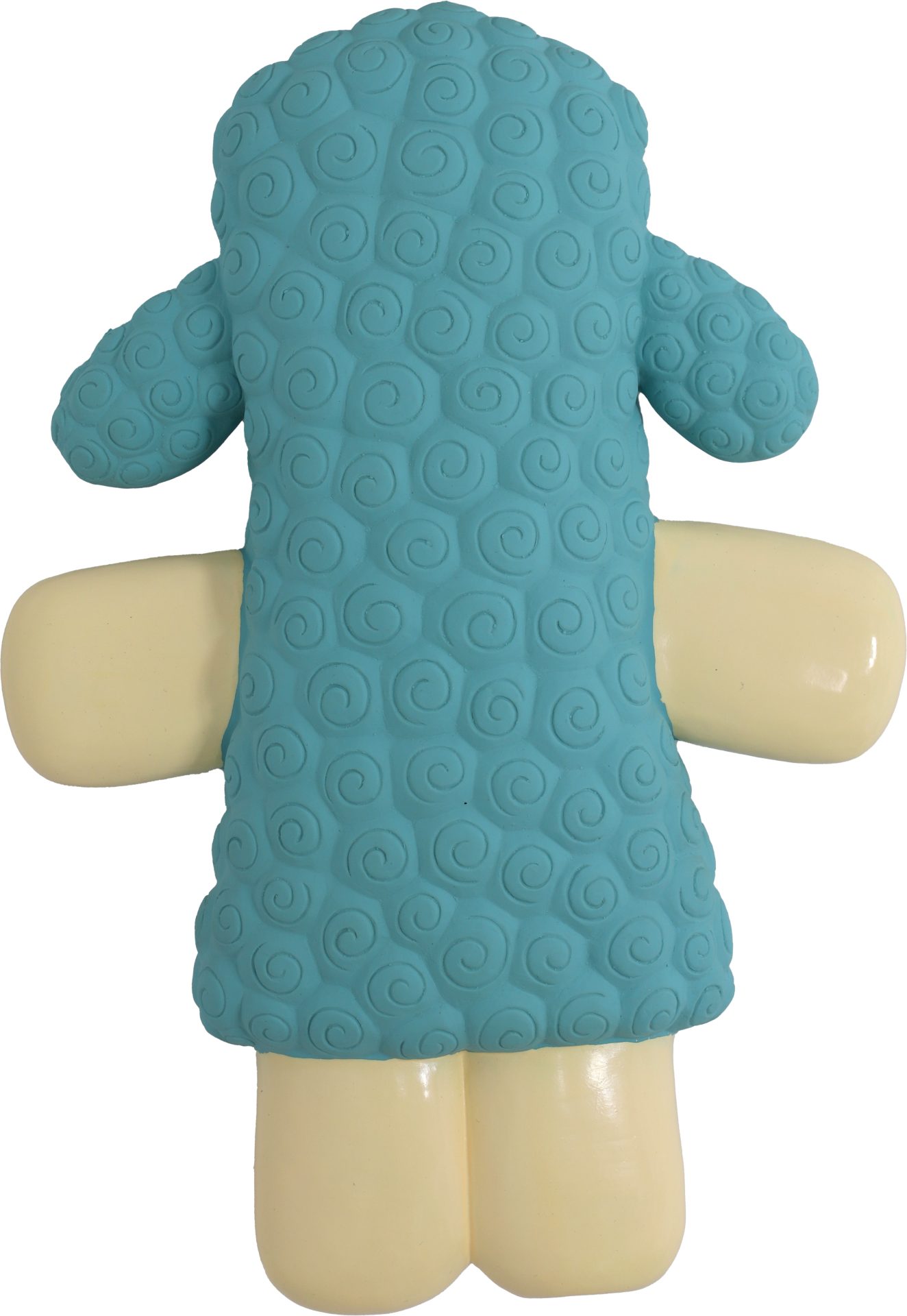 De blauwe latex alpaca is compact, stevig en vol karakter, een unieke speelkameraad voor elke hond.