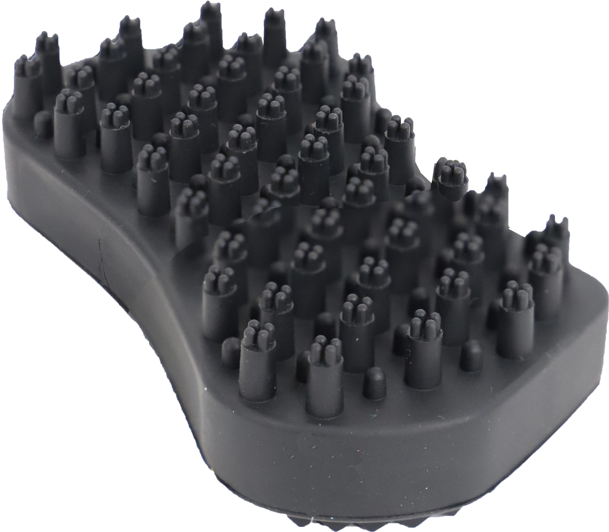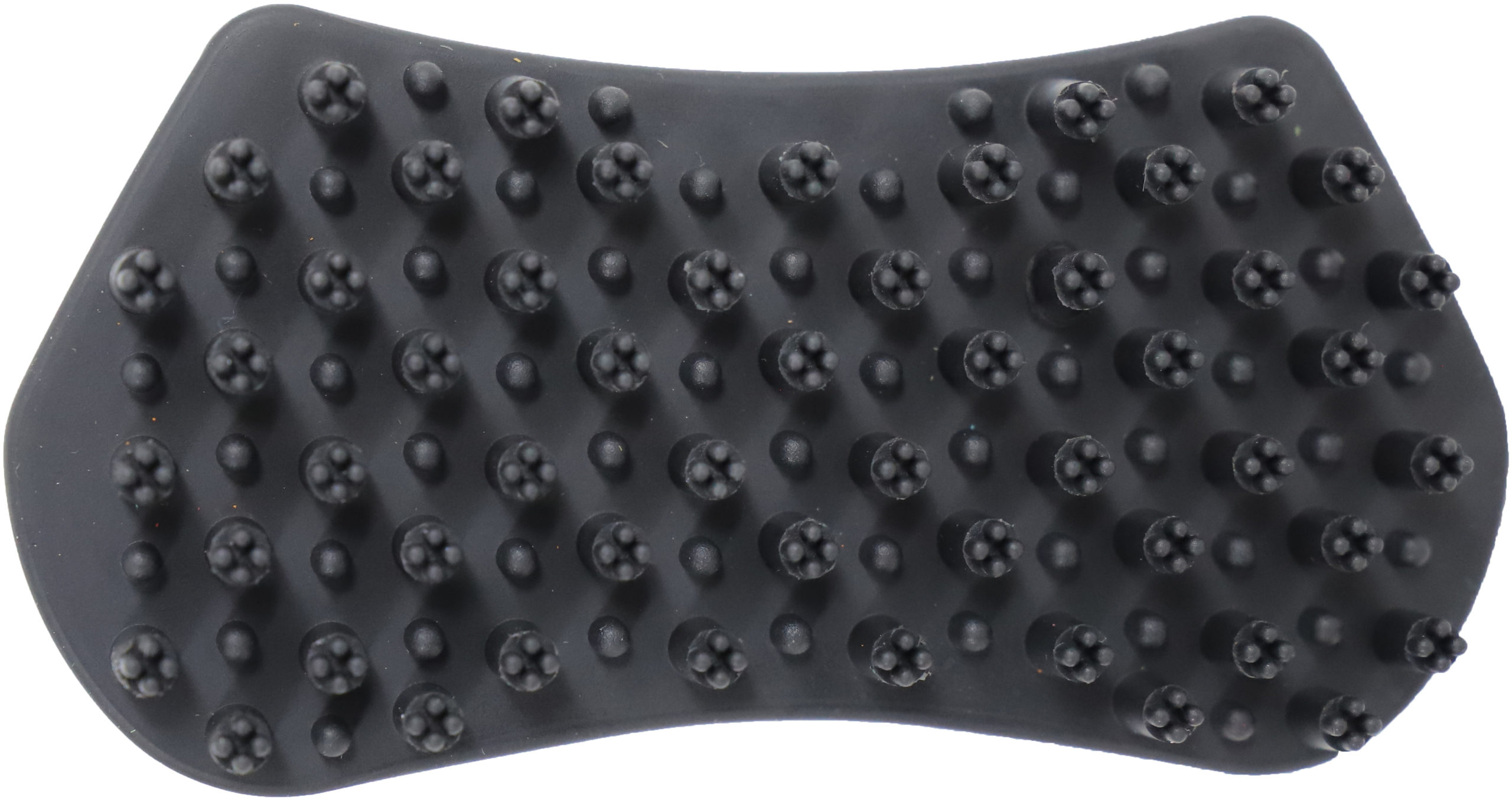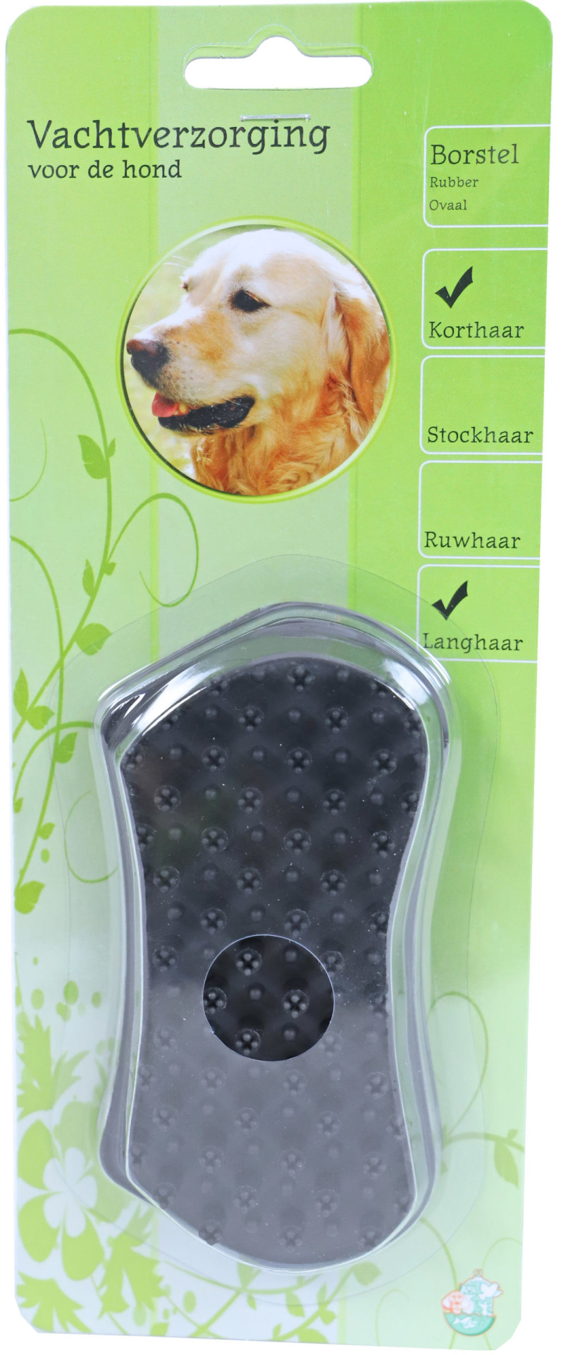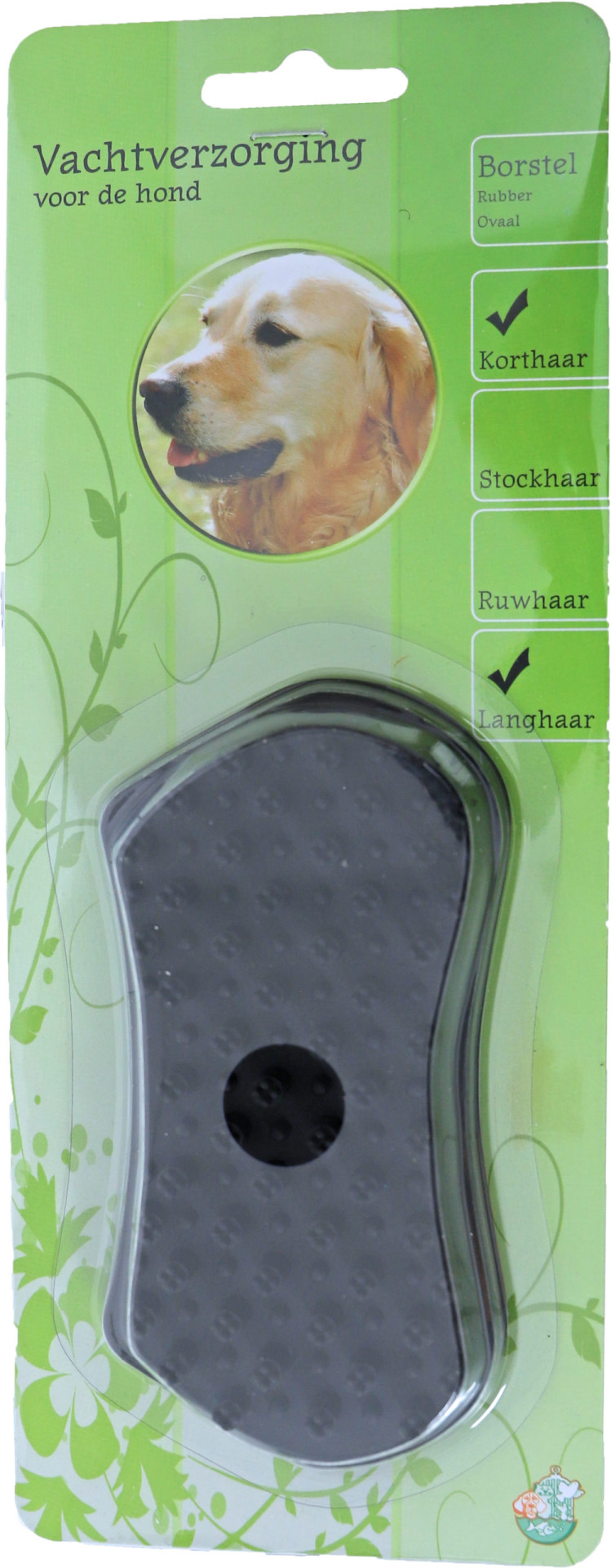 Deze rubberen borstel is uitermate geschikt voor het verzorgen van de vacht. Wrijf de borstel stevig over de huid en de speciaal gevormde rubber uiteinden verwijderen dode huiscellen, vuil en losse of dode haren. Tevens draag deze borstel er aan bij dat de aanmaak en verspreiding van natuurlijke olien die de hond zelf aanmaakt wordt gestimuleerd. Is ook uitermate geschikt voor gebruik tijdens het baden, om de vacht diep en grondig te reinigen.