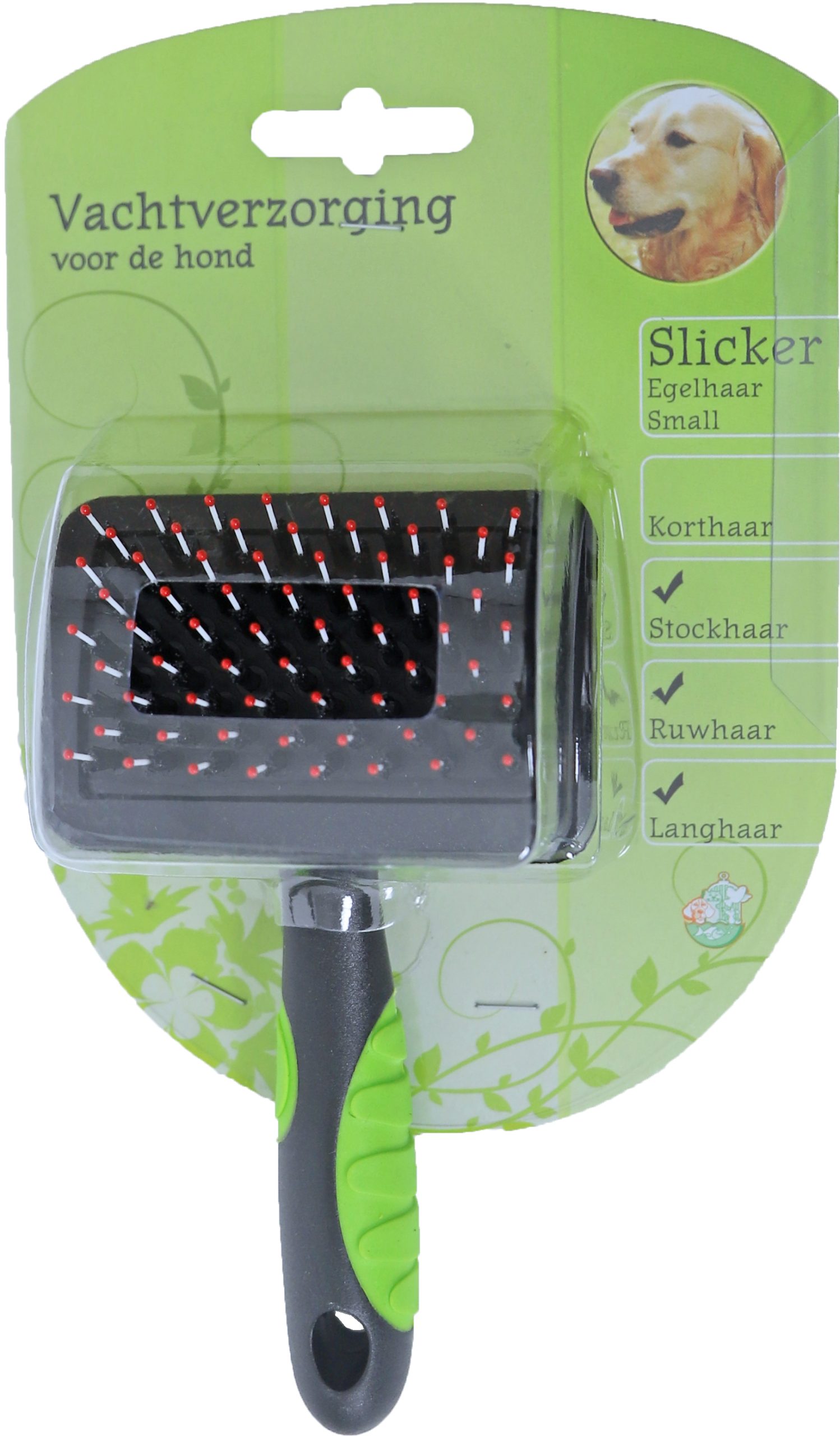 Deze egelhaar slicker verzorgt de vacht van uw hond door middel van het verwijderen van losse en dode haren. De egelhaar slicker is geschikt voor alle typen honden. De zogenaamde ‘egelhaar’-pinnen zorgen ervoor dat de losse en dode haren worden verwijderd tijdens het borstelen, door de Nylon haren wordt tegelijkertijd het vuil verwijderd. De plastic bolletjes aan het uiteinde van de pinnen beschermen zowel de vacht als de huid van uw hond. Het regelmatig kammen en borstelen van uw hond draagt er aan bij dat de vacht in topconditie blijft. Zo blijft de vacht glanzend schoon en ontstaan er minder snel klitten. Verzorg de vacht altijd in de richting van de haargroei, zodat de verzorging voor zowel u als uw hond vlekkeloos verloopt.