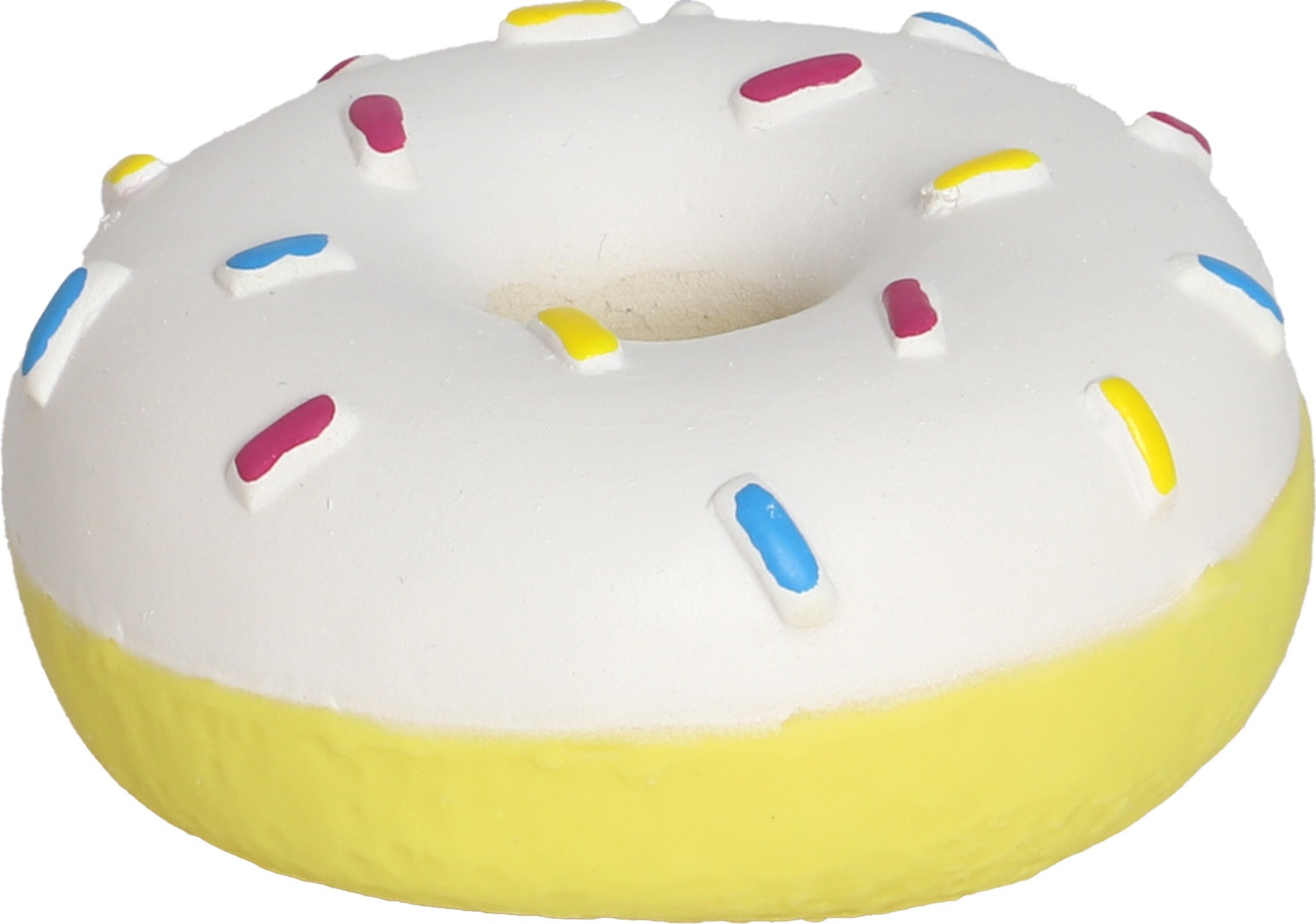 Ontdek de latex donut met piep, het meest smakelijke hondenspeeltje voor eindeloos plezier! Dit vrolijke en unieke hondenspeeltje is ontworpen om uw hond te vermaken en om zijn smaakpapillen te prikkelen. Het water zal uw trouwe viervoeter in de mond lopen bij het zien van dit unieke speeltje. Elke beet in deze donut zorgt voor een vrolijk piepgeluid dat uw hond enthousiast maakt en aanmoedigt om te blijven spelen. Deze donut ziet er niet alleen superleuk uit, maar trekt ook direct de aandacht van uw hond, waardoor ze er dol op zullen zijn. Gemaakt van hoogwaardig latex, is dit speeltje stevig genoeg om langdurig kauwen en spelen te weerstaan, terwijl het veilig is voor uw hond. Perfect voor allerlei interactieve spelletjes, zoals apporteren en kauwen, wat bijdraagt aan de gezondheid en het welzijn van uw hond.