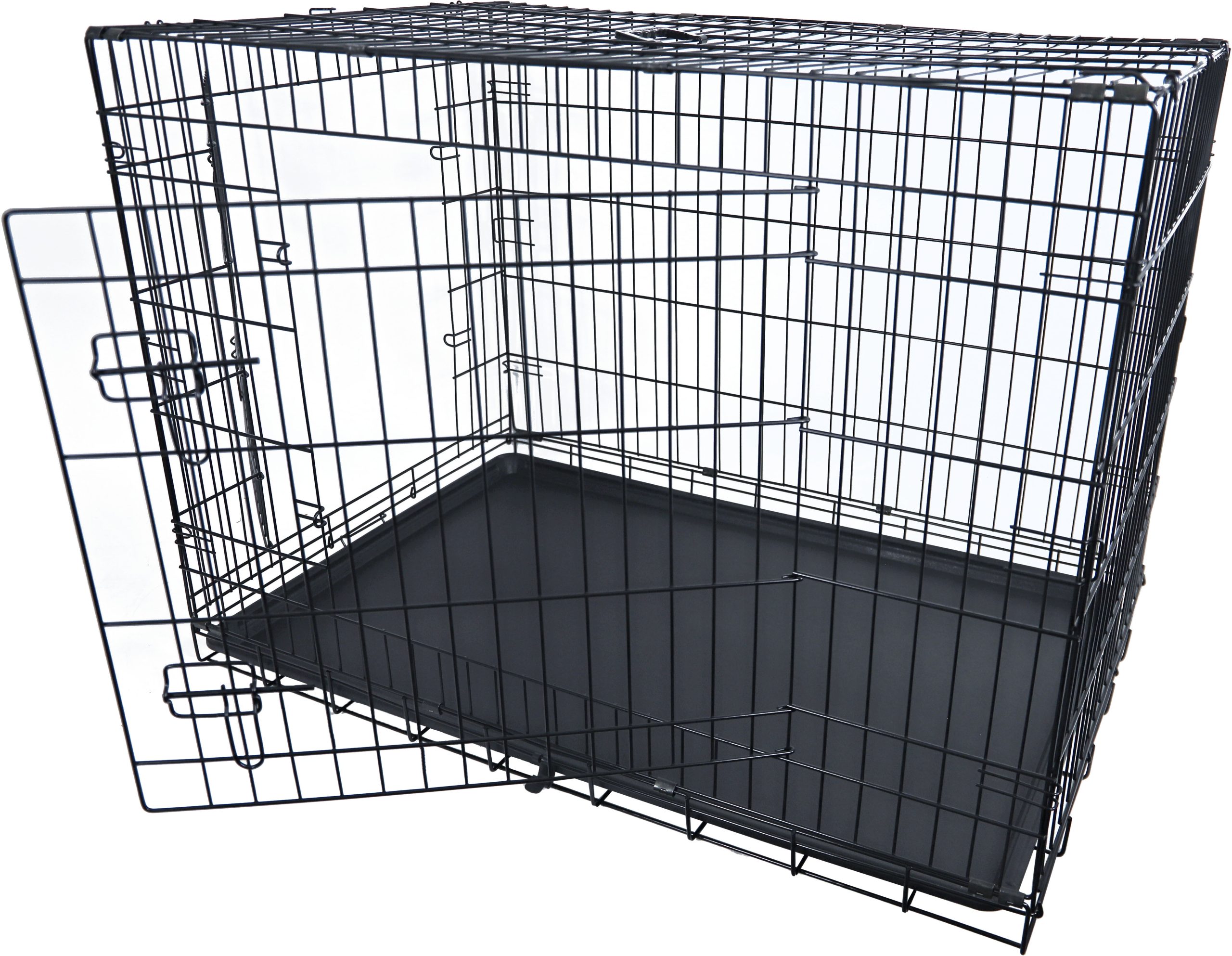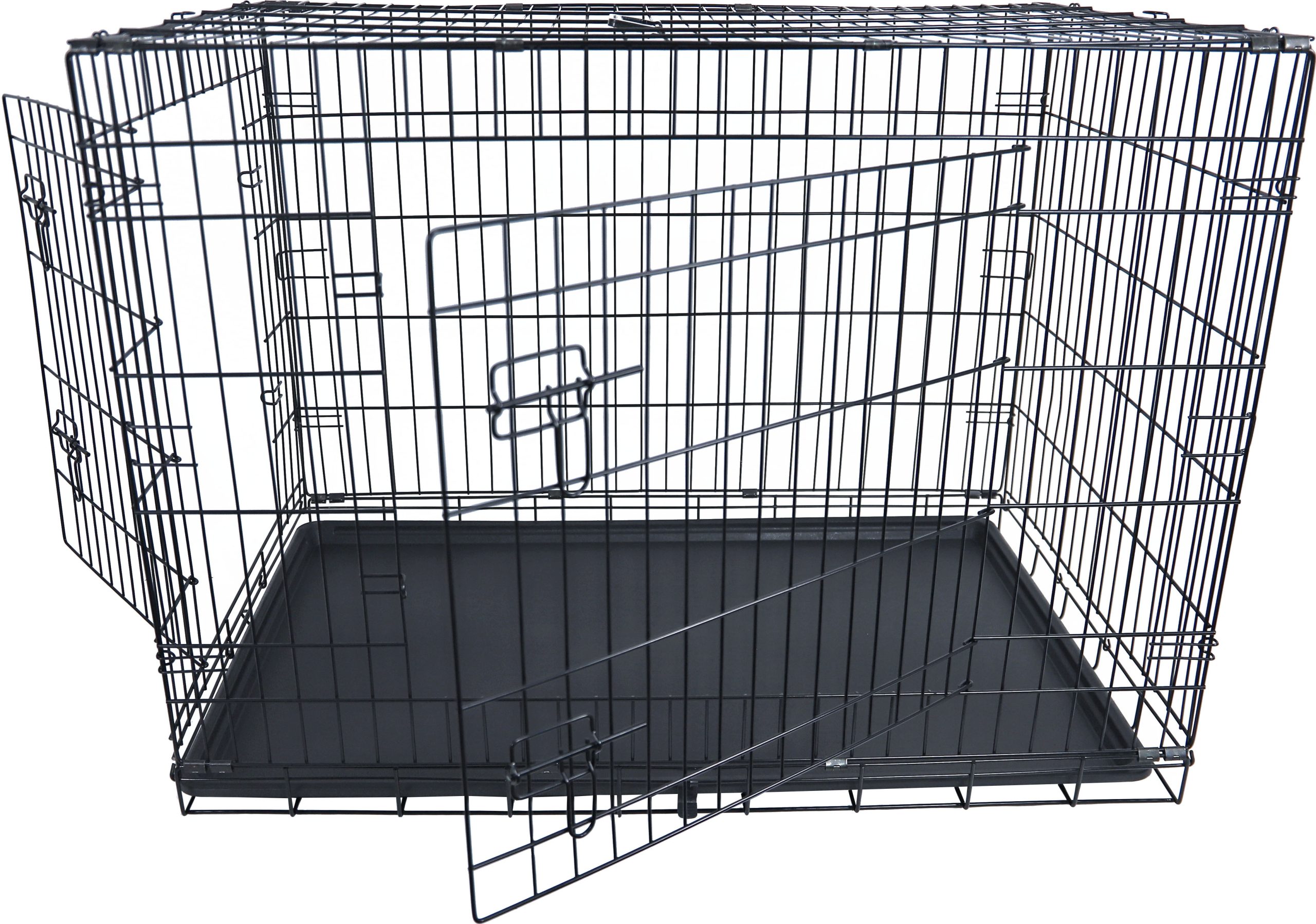 De draadkooi is voorzien van twee deuropeningen voor eenvoudig in- en uitstappen. De ABS-plastic lade maakt schoonmaken gemakkelijk, terwijl het handvat zorgt voor eenvoudig verplaatsen. De kooi is eenvoudig opvouwbaar, waardoor hij compact op te bergen is.