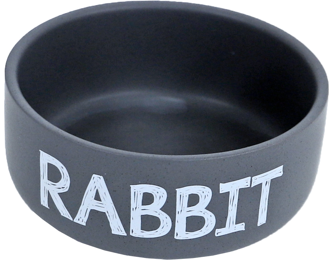 De Boon konijnen eetbak steen in matgrijs is een aardewerken eetbak met een diameter van 12 cm. De bak heeft de tekst “RABBIT” en is ideaal voor het voeren van konijnen.