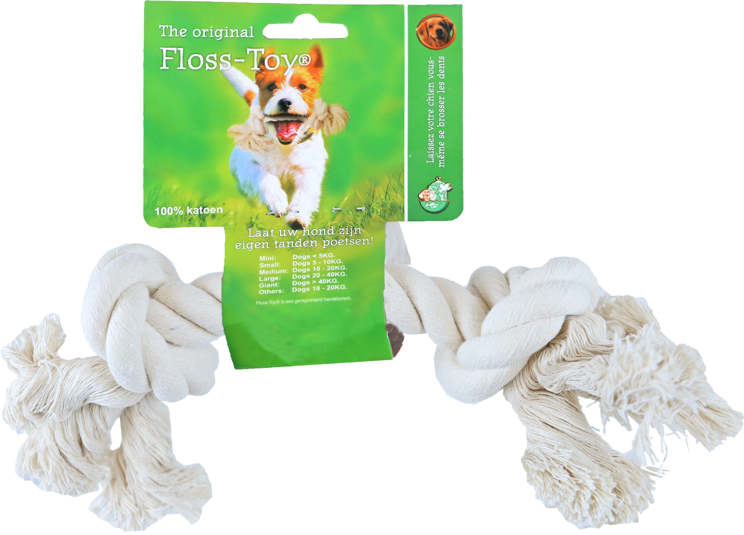 Elke hond kan nu zelf zijn tanden poetsen. De Floss-toy reinigt spelenderwijs het gebit. Niet alleen de oppervlakte, maar ook tussen de tanden. Iedere hond is er dol op!
