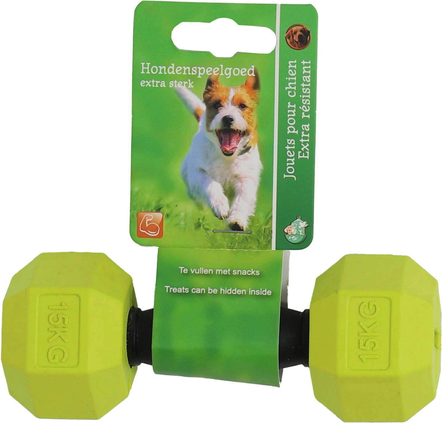 De halter snacktoy, hét ultieme hondenspeeltje voor urenlang speelplezier! Gemaakt van sterk en duurzaam rubber met een stevig nylon handvat, is dit innovatieve hondenspeelgoed ontworpen om zelfs de meest energieke speelsessies te doorstaan. Geïnspireerd op de klassieke vorm van een halter, is dit speeltje perfect voor interactief spel en biedt het eindeloos vermaak voor uw viervoeter. Maar dat is nog niet alles, het is niet alleen een speeltje, het is ook een traktatie dispenser! Verborgen in de uiteinden van de halter kunt u de favoriete snacks van uw hond verstoppen, waardoor speeltijd verandert in een smakelijke speurtocht. Of het nu gaat om apporteren, trekspelletjes of solo spel, de halter stimuleert actieve betrokkenheid, mentale stimulatie en voldoet aan de natuurlijke instincten van uw hond om te zoeken en te kauwen.