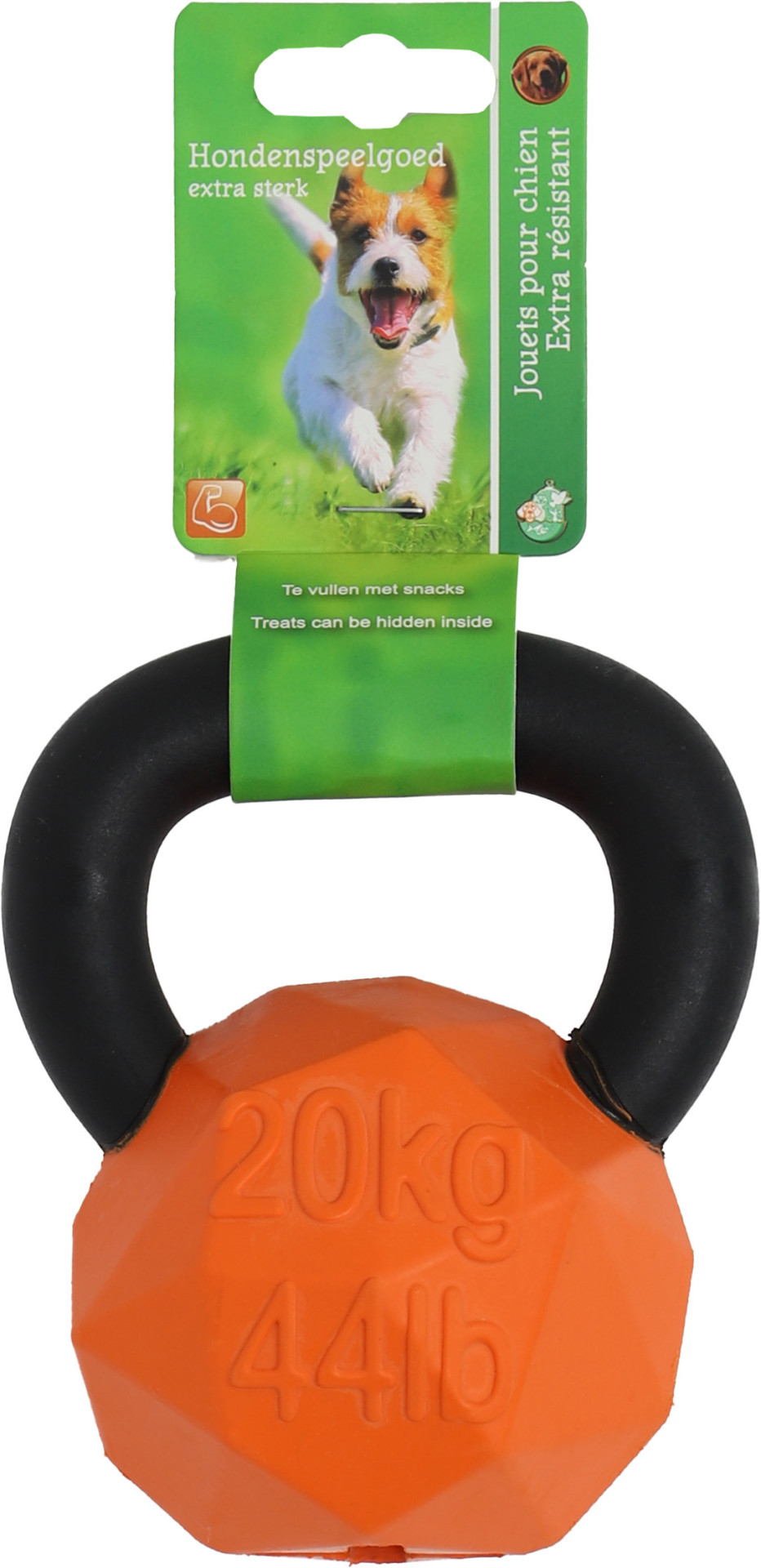 De kettlebell snacktoy, hét ultieme hondenspeeltje voor urenlang speelplezier! Gemaakt van sterk en duurzaam rubber met een stevig nylon handvat, is dit innovatieve hondenspeelgoed ontworpen om zelfs de meest energieke speelsessies te doorstaan. Geïnspireerd op de klassieke vorm van een kettlebell, is dit speeltje perfect voor interactief spel en biedt het eindeloos vermaak voor uw viervoeter. Maar dat is nog niet alles, het is niet alleen een speeltje, het is ook een traktatie dispenser! Verborgen in zijn stevige rubberen vorm kunt u de favoriete snacks van uw hond verstoppen, waardoor speeltijd verandert in een smakelijke speurtocht. Of het nu gaat om apporteren, trekspelletjes of solo spel, de kettlebell stimuleert actieve betrokkenheid, mentale stimulatie en voldoet aan de natuurlijke instincten van uw hond om te zoeken en te kauwen.