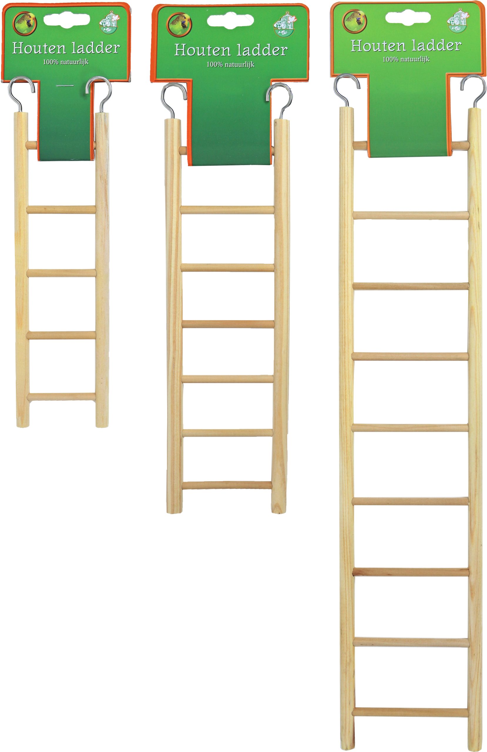 Een houten vijftrapsladder voor vogels is een charmante en functionele toevoeging aan elke volière of vogelkooi. Deze ladder, gemaakt van natuurlijk hout, bestaat uit vijf treden die gelijkmatig zijn verdeeld om vogels te helpen bij het klimmen en verkennen. De treden zijn stevig en glad afgewerkt om veiligheid en comfort voor de vogels te garanderen. De ladder is eenvoudig te bevestigen aan de zijkanten van een kooi, waardoor het een praktische speeltje is dat ook bijdraagt aan de fysieke activiteit en mentale stimulatie van de vogels.