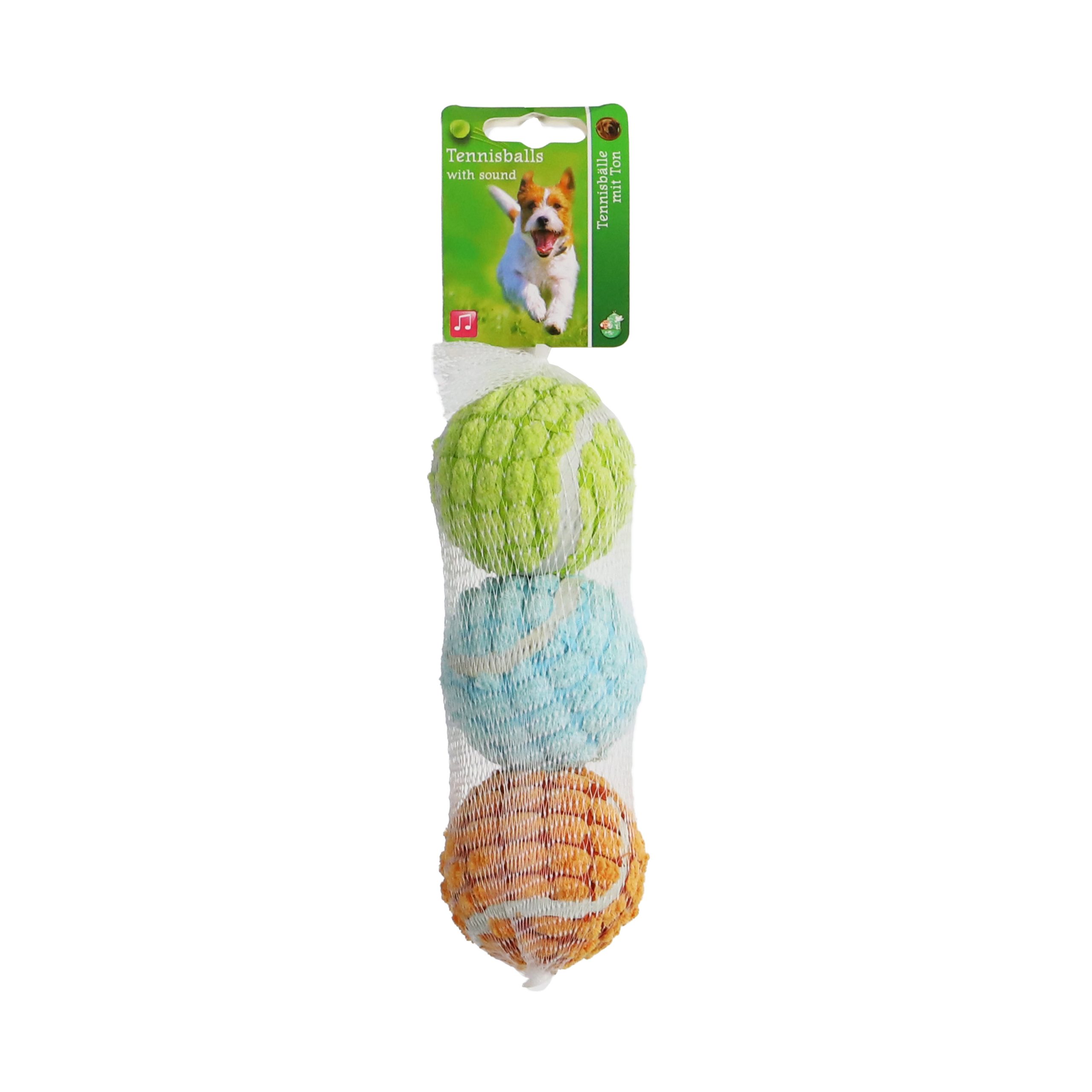 Net a 3 soft tennisballen met een diameter van 6.4Cm, geschikt voor honden van een gemiddeld formaat.