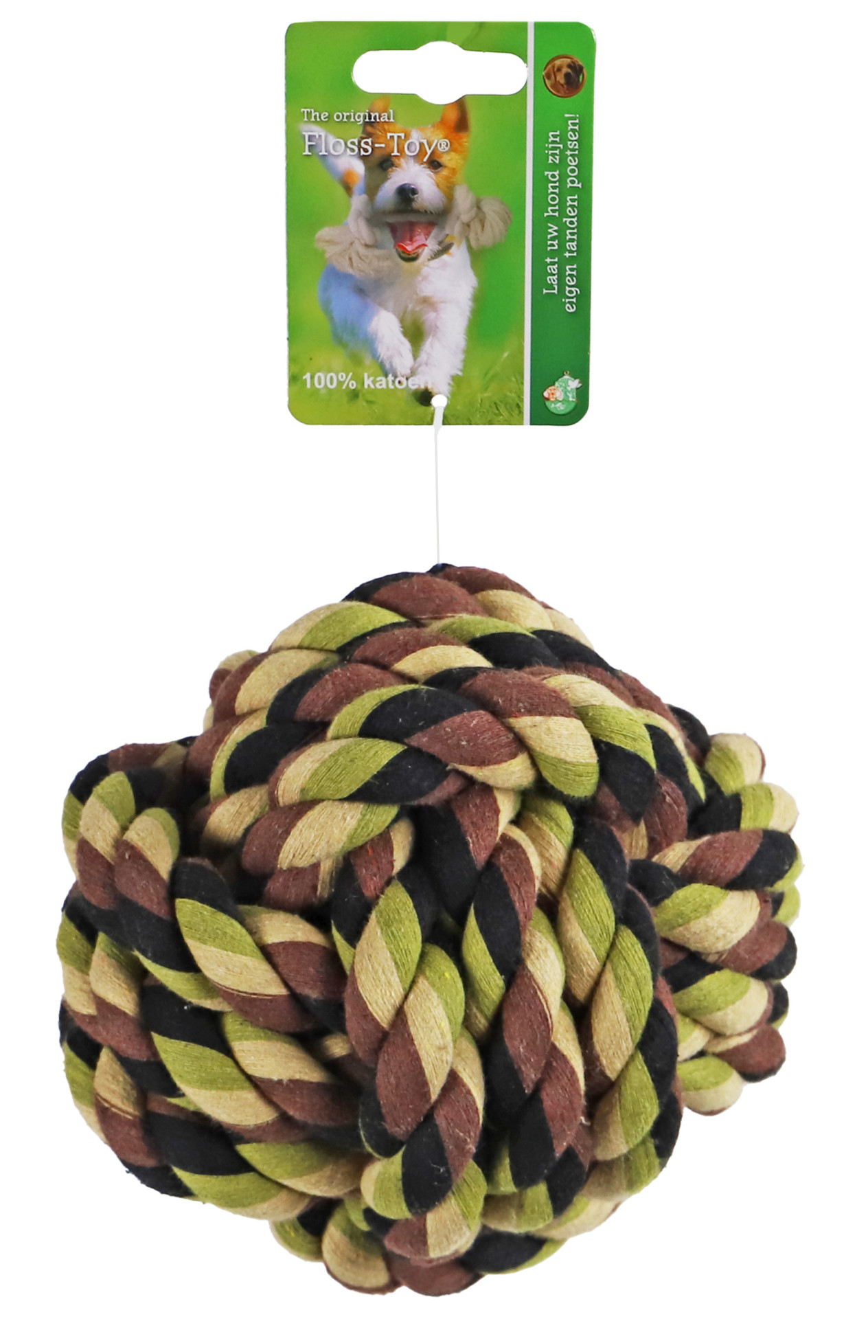Laat uw hond zijn eigen tanden poetsen met deze floss-toy! De floss-toy reinigt spelenderwijs het gebit van uw hond, niet alleen de oppervlakte van zijn tanden, maar juist ook tussen de tanden, waardoor het gebit volledig wordt gereinigd tijdens het spelen. Dit product is gemaakt van 100% katoen, waardoor het ontzettend sterk en duurzaam is en waardoor de flossende werking niet onaangenaam aanvoelt in de bek van uw hond.