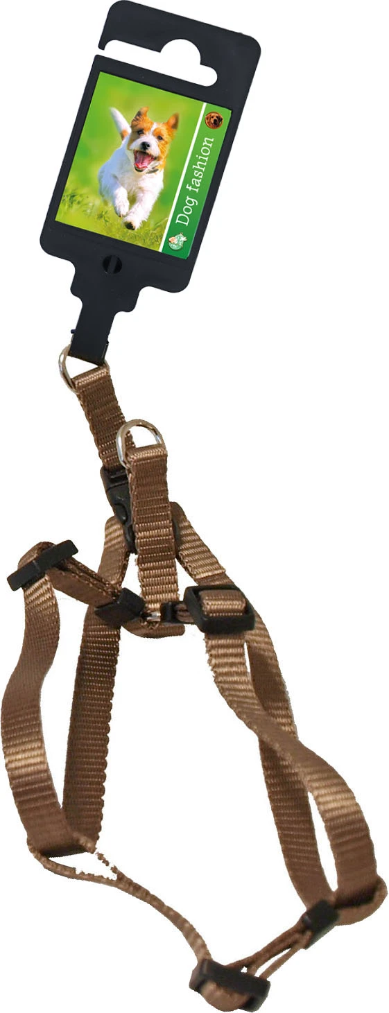 Gebr. De Boon BV Dog Fashion nylon BH-tuig (instaptuig). Het is een handig verstelbaar tuig met click-sluiting. Te verkrijgen in verschillende maten. Er zijn ook bijpassende nylon looplijnen in verschillende kleuren.