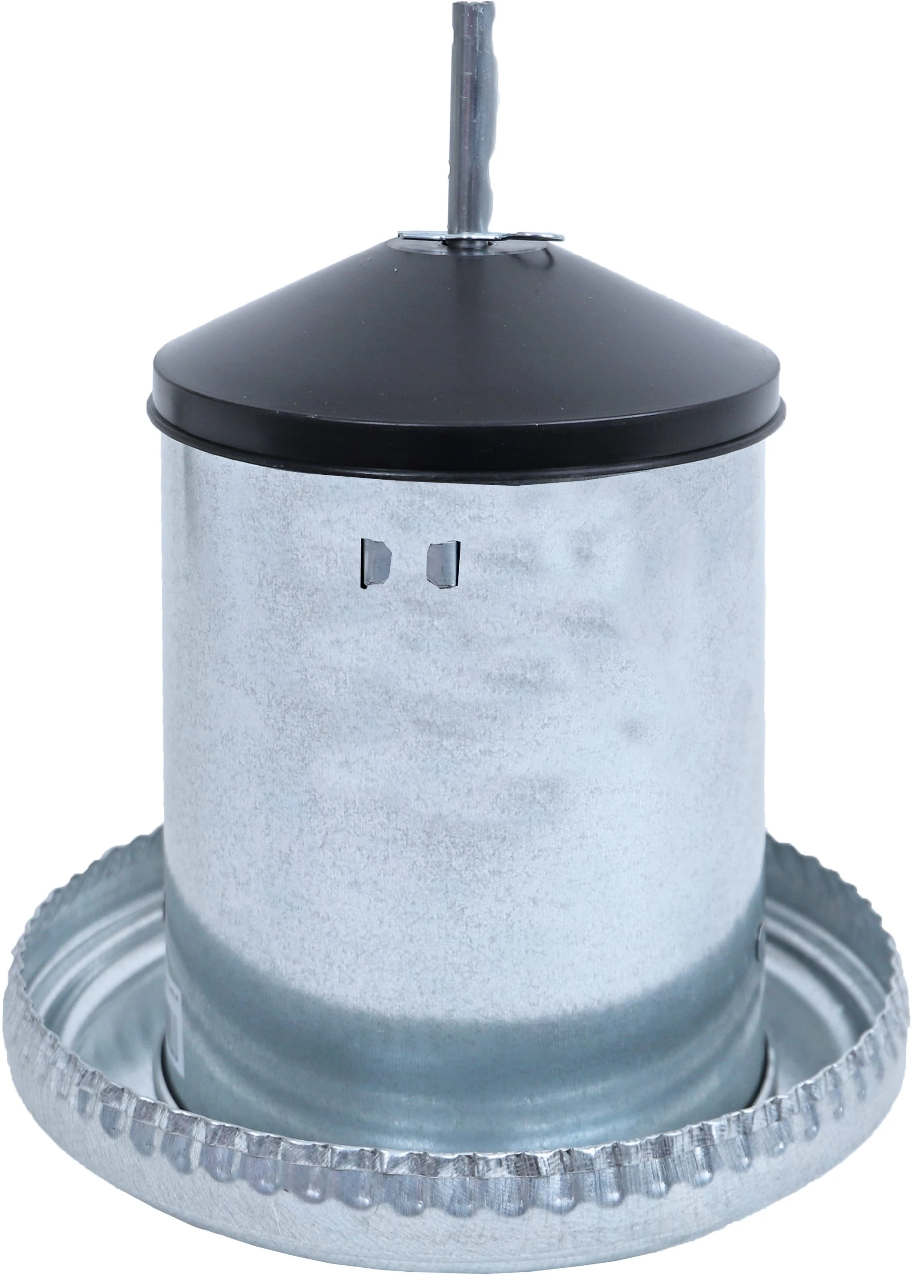 De metalen voersilo met een inhoud van 5 kg. is een degelijke metalen voersilo die het morsen en/of knoeien van het voer tegen gaat. Ook zorgt de voersilo ervoor dat de kippen langere tijd worden voorzien van voer.
