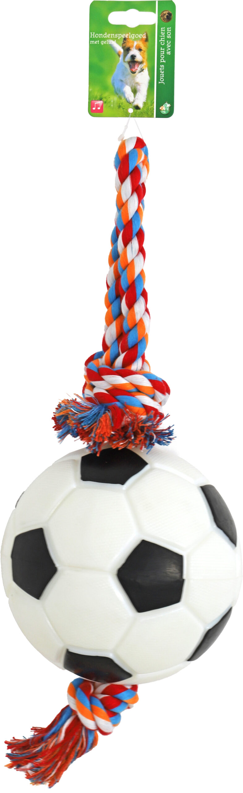Doe uw harige vriend een plezier en laat hem het veld betreden met onze TPR voetbal met touwlus! Met een robuuste constructie van 17 cm en een harde pieper binnenin, is deze voetbal gemaakt om elke speelsessie te weerstaan. Maar dat is nog niet alles! De opvallende rood/wit/blauw/oranje touwlus biedt niet alleen een vleugje sportieve stijl, maar maakt het ook perfect voor trekspelletjes die de band tussen u en uw hond versterken. En terwijl uw hond apporteert en speelt, zorgt de flossende werking van de touwlus voor extra gebitsverzorging, waardoor het tandvlees gemasseerd wordt en tandplak wordt verminderd. Of het nu een energieke speelsessie in de achtertuin is of een verfrissende apporteersessie in het park, onze TPR voetbal met touwlus staat garant voor urenlang vermaak en gezonde activiteit voor uw trouwe metgezel. Haal vandaag nog deze voetbal in huis en maak van elke dag een speelfestijn voor uw hond!