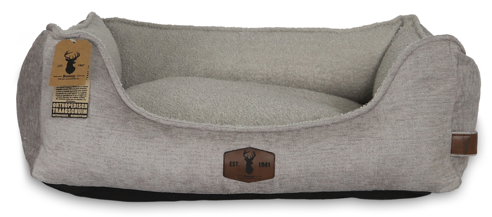 Deze Boony EST 1941 orthopedisch traagschuim divan uit de premium range behoort tot de beste divans welke u voor uw hond kunt aanschaffen. Deze divan biedt optimale ondersteuning aan de spieren en gewrichten van uw hond. De stevige vulling van traagschuim draagt bij aan een orthopedisch verantwoorde (nacht)rust. Door zijn eigen lichaamsgewicht zakt uw hond light weg in het traagschuim. Drukpunten worden geneutraliseerd waardoor een orthopedisch correcte uitlijning van de wervelkolom ontstaat. Het kussen van deze divan is voorzien van 2 verschillende stoffen. Dit geeft u de mogelijkheid het kussen om te draaien waardoor het kussen direct een andere uitstraling krijgt. Hierdoor kunt u zelf uw favoriete uitstraling kiezen. De combinatie van de twee stoffen geven de divan een stijlvolle uitstraling die gemakkelijk in te passen is in allerlei interieurs.