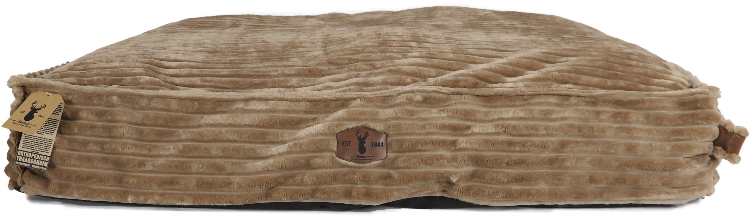 Dit Boony EST 1941 orthopedisch traagschuim kussen uit de premium range behoort tot de beste kussens welke u voor uw hond kunt aanschaffen. Het kussen biedt optimale ondersteuning aan de spieren en gewrichten van uw hond. De stevige vulling van traagschuim draagt bij aan een orthopedisch verantwoorde (nacht)rust. Door zijn eigen lichaamsgewicht zakt uw hond licht weg in het traagschuim. Drukpunten worden geneutraliseerd waardoor een orthopedisch correcte uitlijning van de wervelkolom ontstaat. De extreem zachte velvet stof van dit kussen biedt uw hond extra comfort en zorgt ervoor dat het ligcomfort tot een maximum wordt gebracht. Het grove corduroy ziet er erg stijlvol en modern uit, waardoor het kussen perfect in te passen is in verschillende interieurs.