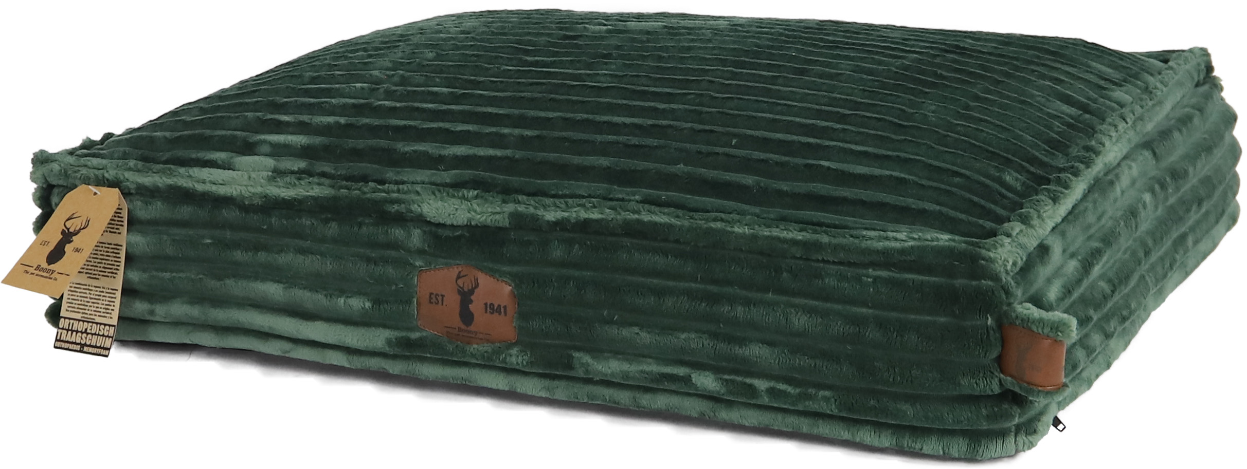Dit Boony EST 1941 orthopedisch traagschuim kussen uit de premium range behoort tot de beste kussens welke u voor uw hond kunt aanschaffen. Het kussen biedt optimale ondersteuning aan de spieren en gewrichten van uw hond. De stevige vulling van traagschuim draagt bij aan een orthopedisch verantwoorde (nacht)rust. Door zijn eigen lichaamsgewicht zakt uw hond licht weg in het traagschuim. Drukpunten worden geneutraliseerd waardoor een orthopedisch correcte uitlijning van de wervelkolom ontstaat. De extreem zachte velvet stof van dit kussen biedt uw hond extra comfort en zorgt ervoor dat het ligcomfort tot een maximum wordt gebracht. Het grove corduroy ziet er erg stijlvol en modern uit, waardoor het kussen perfect in te passen is in verschillende interieurs.