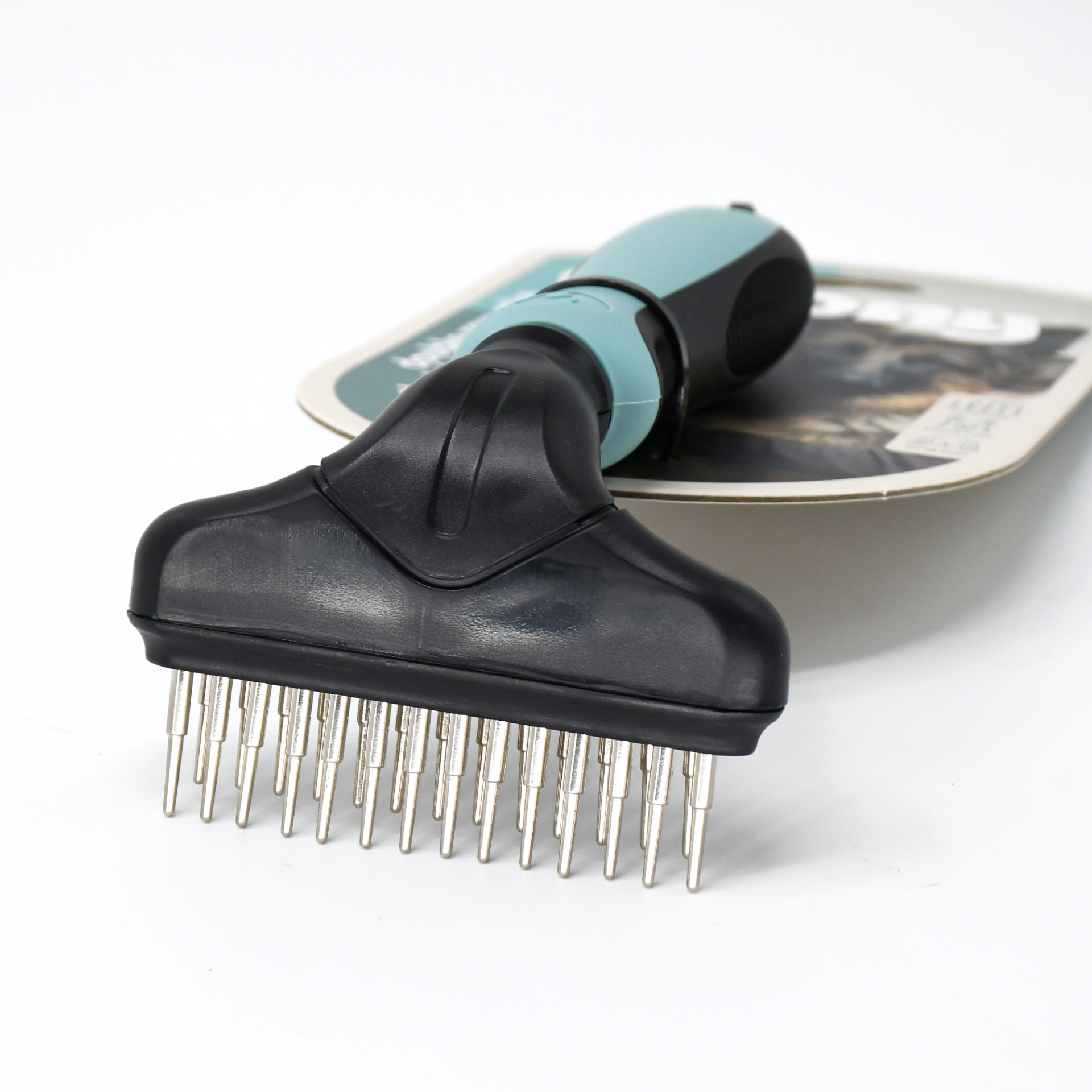 De combinatie van een dubbele rij en roterende pennen zorgt voor een krachtige maar soepele doorkambaarheid. De pennen bewegen mee tijdens het kammen, waardoor er minder weerstand ontstaat en je gemakkelijker door klitten en ondervacht komt. Dit vermindert trek aan de haren en helpt huidirritatie voorkomen.