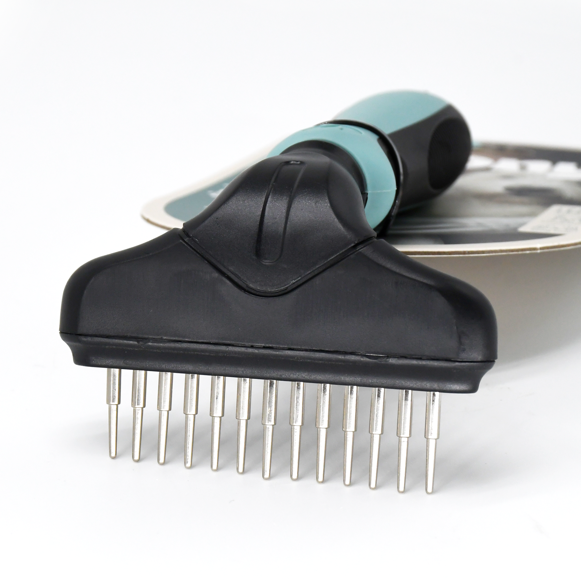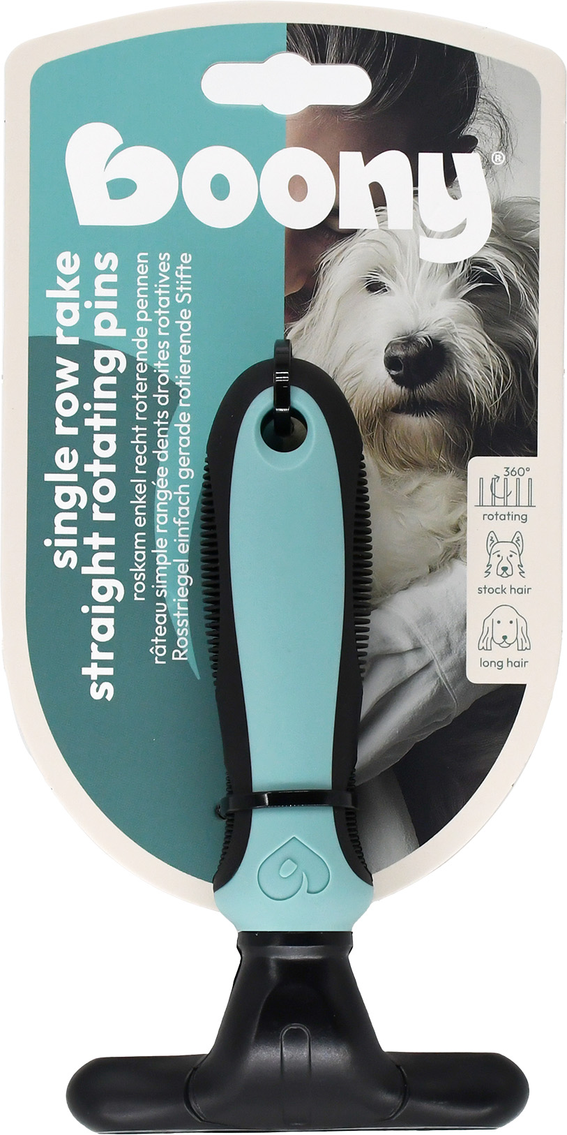 Deze roskam met roterende tanden is speciaal ontworpen voor honden met een midellange tot langestockharige vacht. De kam helpt bij het verwijderen van klitten en overtollige ondervacht, zonder de bovenlaag te beschadigen. Dankzij het slimme ontwerp glijdt de kam soepel door de vacht en blijft het verzorgingsmoment aangenaam voor jou en je hond.