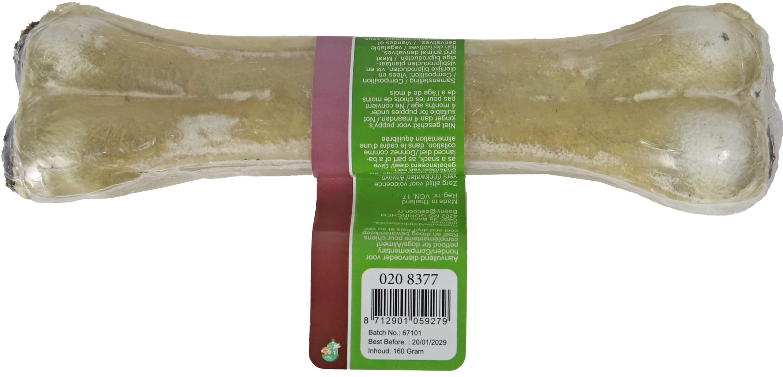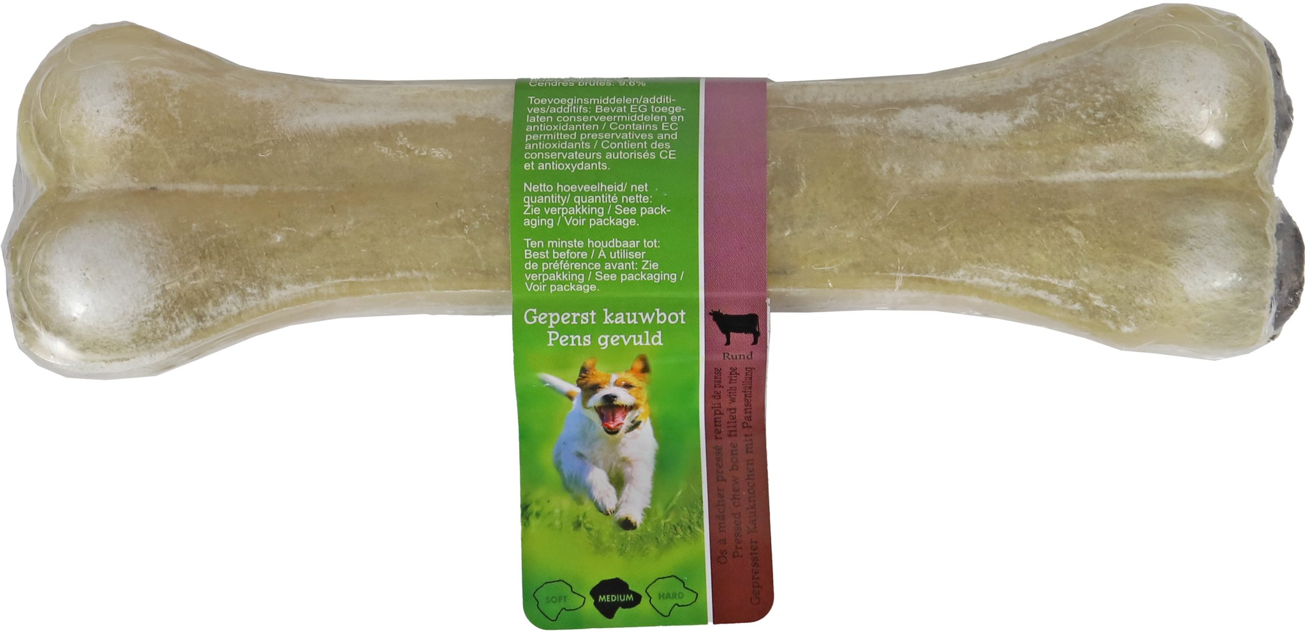 Geperst bot van buffelhuid gevuld met pens. De pensvulling maakt dit bot onweerstaanbaar lekker en de buffelhuid buitenkant zorgt voor extra lang kauwplezier. Thailand A kwaliteit. 100% natuurlijk.