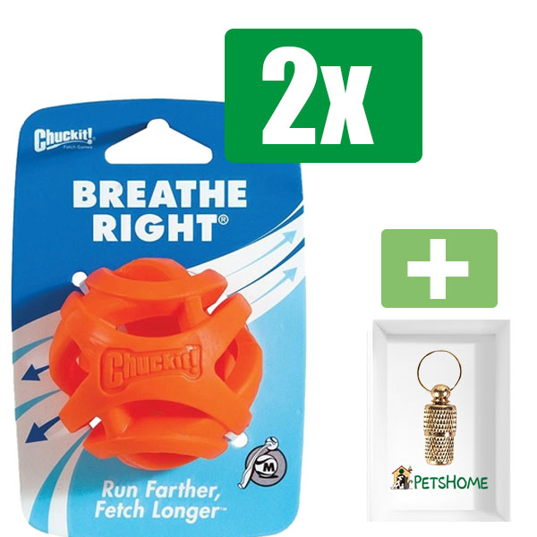 Chuckit Breathe Right Fetch Ball. Gooi verder, apporteer langer! De Chuckit Breathe Right Fetch Ball is een sterke bal die is ontworpen om ademhaling en luchtstroom in de longen van honden te vergemakkelijken tijdens het apporteren. Dankzij deze bal zal u hond het apporteren 30 tot 50% langer volhouden. Perfect te gebruiken in combinatie met de Chuckit Launchers! Drijft op water!