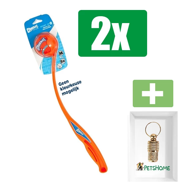 Chuckit Sport Werpstok – 45 CM – Hondenspeelgoed – 2 stuks – Inclusief Goudkleurige PetsHome Adreskoker