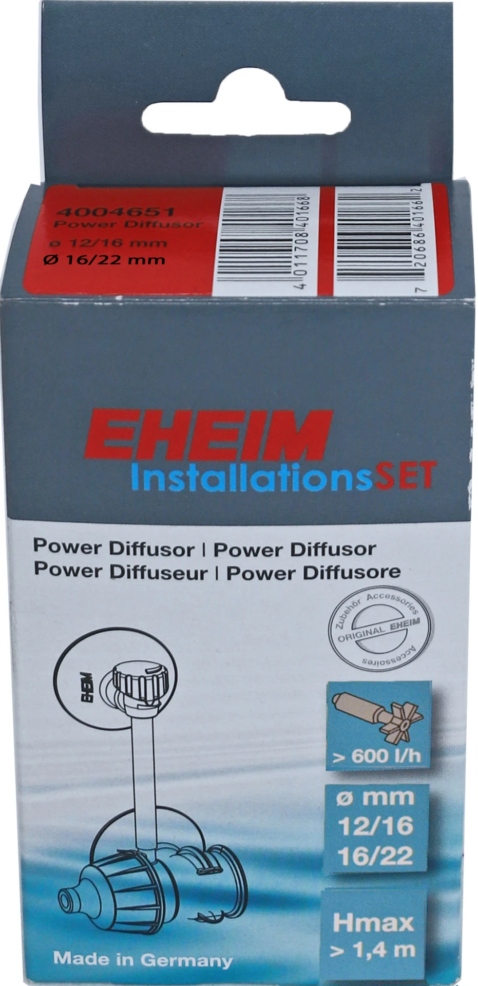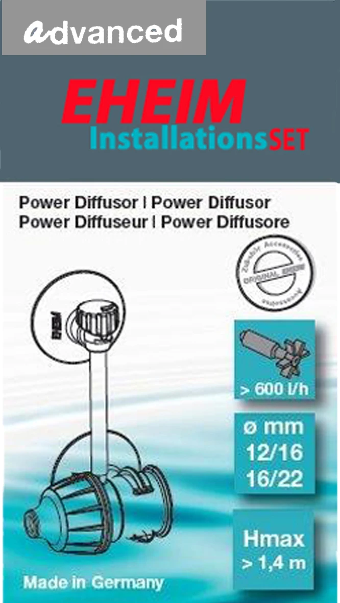 EHEIM DiffusorDe diffusor trekt verse lucht van buiten aan en verrijkt hiermee het aquariumwater met zuurstof. De toevoer van zuurstof is met name nodig voor dun beplante aquaria, voor koude- en zeeaquaria of voor het houden van zuurstofminnende vissen. Lucht moet ook worden toegevoerd wanneer een afdekking of verlichtingssysteem de ruimte boven het wateroppervlak beperkt, anders zou de beschikbare zuurstof uit dit gebied snel worden opgebruikt.